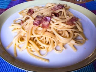 It is quite possible they introduced us to this dish by its proper name (spaghetti alla carbonara) but once they explained what was in it, it quickly became bacon and egg spaghetti.