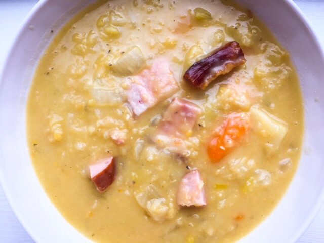 This is probably the very first soup I ever made. It is very simple to make and very hearty. I have a preference for soups which are chunky. They make me feel like I have eaten something, which means I can have them alone as a meal and feel satiated. This soup is great both with ham and without it, so I have included this as an option for those avoiding meat.