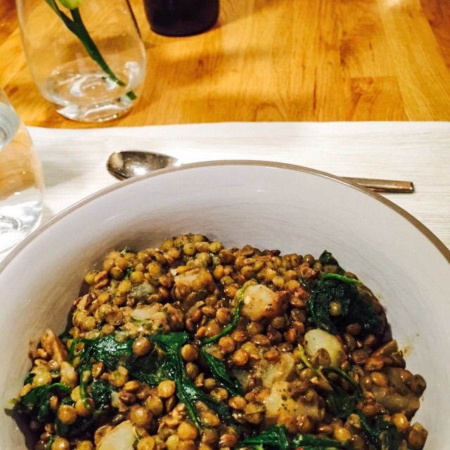 Remove the lid from the lentils and give the dish a stir. Mix in the potatoes and continue to simmer with the lid removed for 15 minutes, stirring occasionally. Zest the lemons and juice them, you should have about 4 Tbsp of juice. Add these along with the cayenne (I prefer less heat with my stew, so feel free to adjust to your taste) and spinach. Stir through and cover with the lid for a couple of minutes to allow the spinach to wilt. Then add the mint and season with salt and pepper.