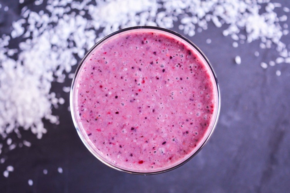 If you have access to frozen açai then leave out the berries and use this instead. Sadly we are still limited to the powder, which I find works best mixed with a blend of berries.